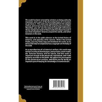This work has been selected by scholars as being culturally important, and is part of the knowledge base of civilization as we know it. This work was reproduced from the original artifact, and remains as true to the original work as possible. Therefore, you will see the original copyright references, library stamps (as most of these works have been housed in our most important libraries around the world), and other notations in the work.This work is in the public domain in the United States of America, and possibly other nations. Within the United States, you may freely copy and distribute this work, as no entity (individual or corporate) has a copyright on the body of the work.As a reproduction of a historical artifact, this work may contain missing or blurred pages, poor pictures, errant marks, etc. Scholars believe, and we concur, that this work is important enough to be preserved, reproduced, and made generally available to the public. We appreciate your support of the preservation process, and thank you for being an important part of keeping this knowledge alive and relevant.